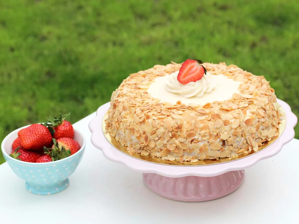 Zloženievajcia, ryžová múka, pšenová múka, kukuričná múka, prírodný trstinový cukor, kukuričný škrob,vínny kameň, kukuričný škrob, jedlá sóda, cukor, jablká, marhule, regulátor kyslosti: kyselina citrónová, antioxidant: kyselina askorbová, želírujúca látka:pektín, farbivá: karotény( betakarotén) a paprikový extrakt, aróma, jahody, smotana pasterizovaná, regulátor kyslosti : kyselina citrónová , smotana, mliečna bielkovina,stabilizátor (karagenan)., mandleAlergényvajcia a výrobky z nich,mlieko a mliečne výrobky (vrátane laktózy),orechy (mandle), sója a výrobky z nejTrvanlivosť24 hodín