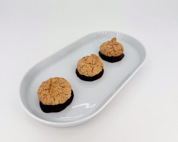 Linecké koliesko plnené čokoládovým krémom a ríbezľovým džemom, poliate čokoládou a navrchu nalepená kokoska.