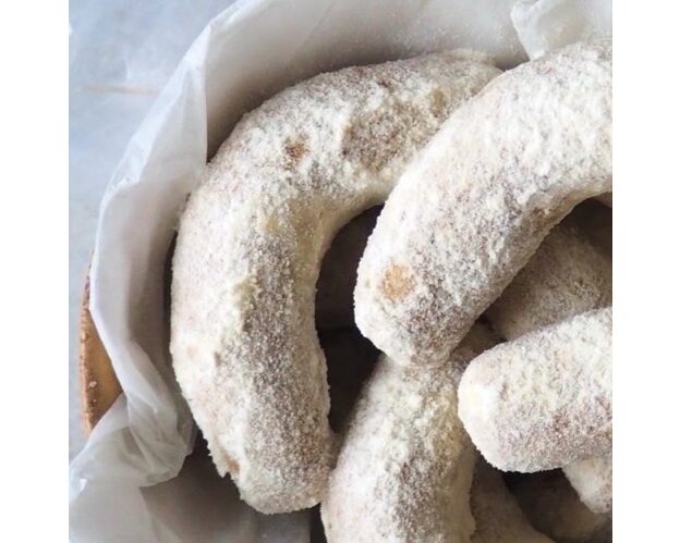 Jemné orechové cestíčko v tvare rohlíčka posypané vanilkovým cukrom.