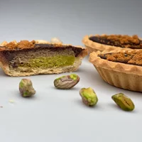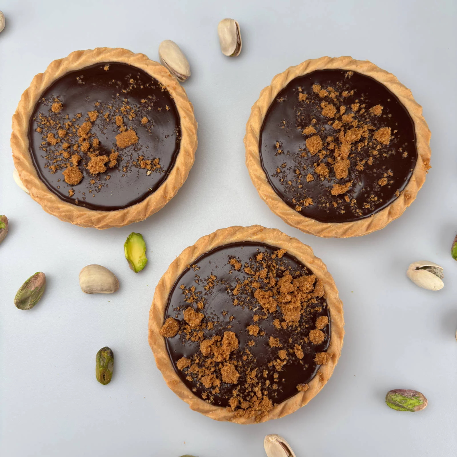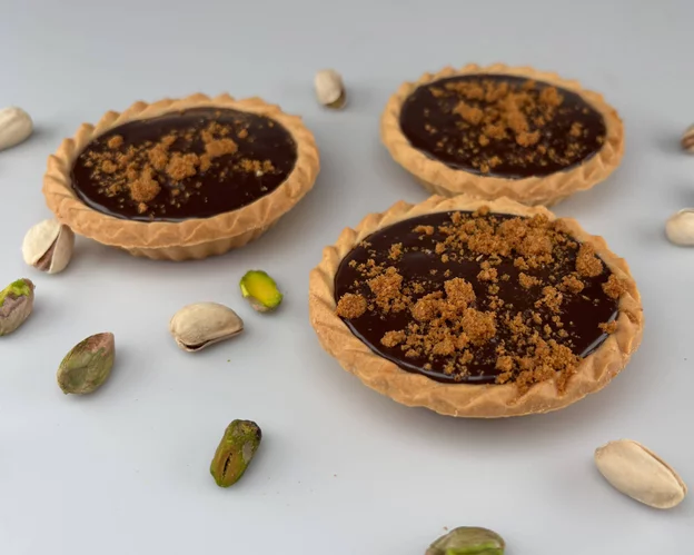 Zloženiekošíček s maslového cestapistáciová Dubai plnka sa kadayifšľahačkový krém s mliečnej čokoládyČokoláda s Lotus keksíkovým posypom